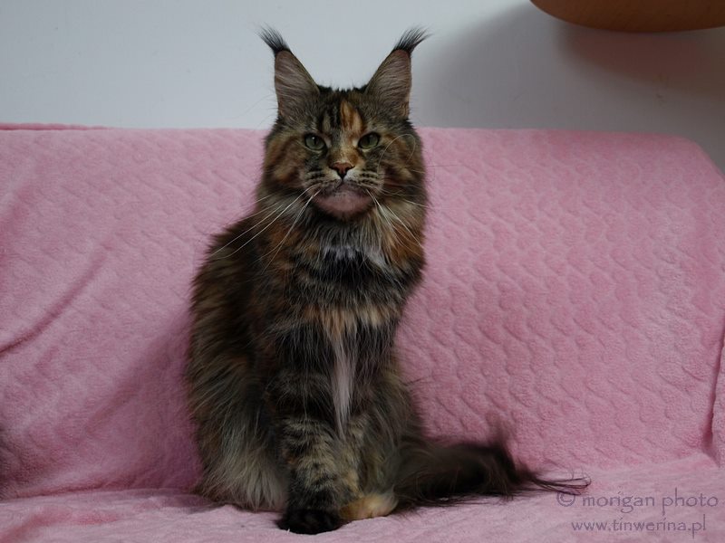 ur. / born 18.02.2014r. kolor / color: czarny szylkret klasycznie pręgowany z bielą / black torbie blotched tabby with white(MCO f 09 22) matka / mother: (N) Bargello's Witch Witch ojciec / father: (N) Ann Tove's Eragon Badania: HCM DNA MYBPC3 N/N, FELV, FIV - negative |